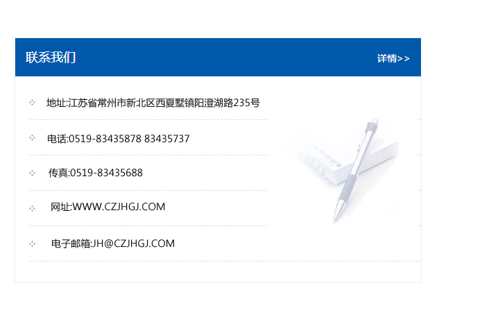傳真:0519-83435688    郵編:213135    網址:WWW.czjhgj_com.gzttgs.com    電子郵箱:JH@czjhgj_com.gzttgs.com